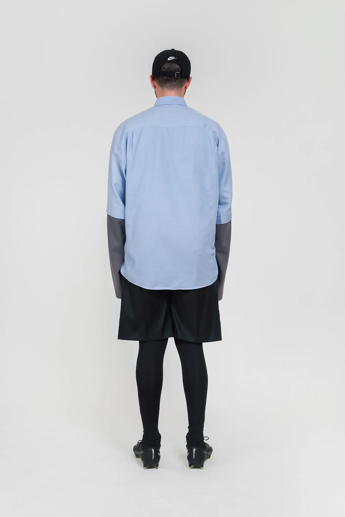 It features a baggy fit.